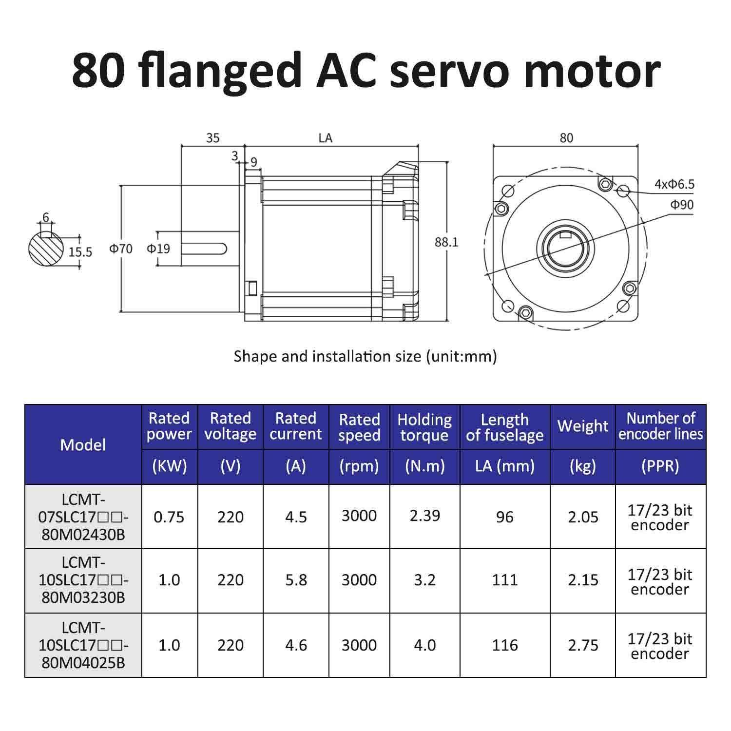 | ໂມເດວມໍເຕີ | LCMT-07SLC17-80M02430B | LCMT-10SLC17-80M03230B | LCMT-10SLC17-80M04025B |