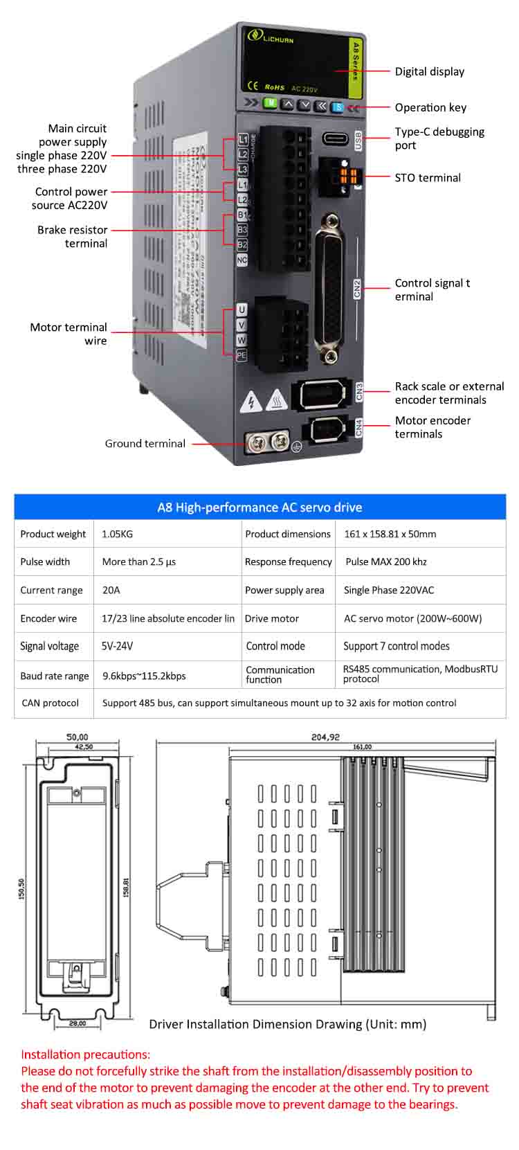 Lichuan A8 ຄວາມຖືກຕ້ອງສູງ STO ABZ AC Servo Motor Drivers Kit — ລາຍລະອຽດຜະລິດຕະພັນເຕັມ
