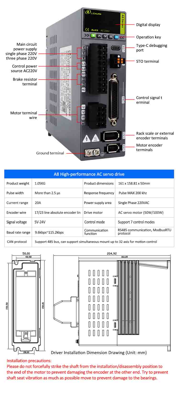 Lichuan A8 series Servo Motor ຂໍ້ໄດ້ປຽບ Driver: