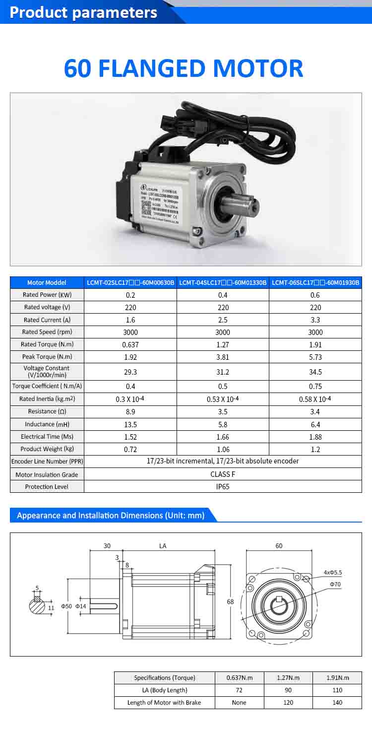 | ໂມເດວມໍເຕີ | LCMT-02SLC17-60M00630B | LCMT-04SLC17-60M01330B | LCMT-06SLC17-60M01930B |